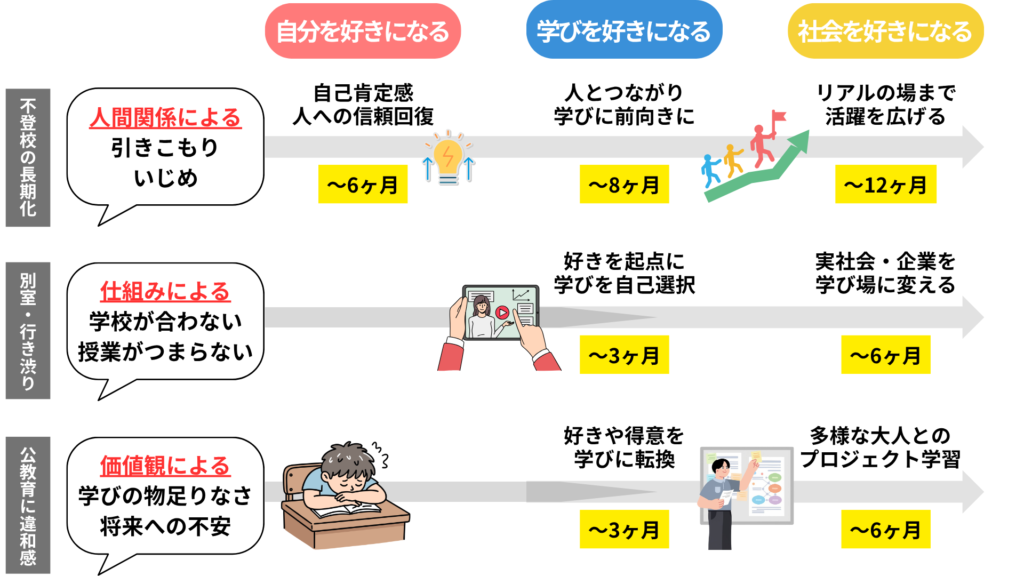 だから、居場所や支援に留まらないその子起点の学びを提供できます。