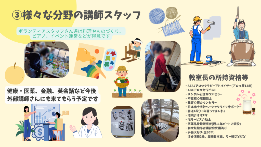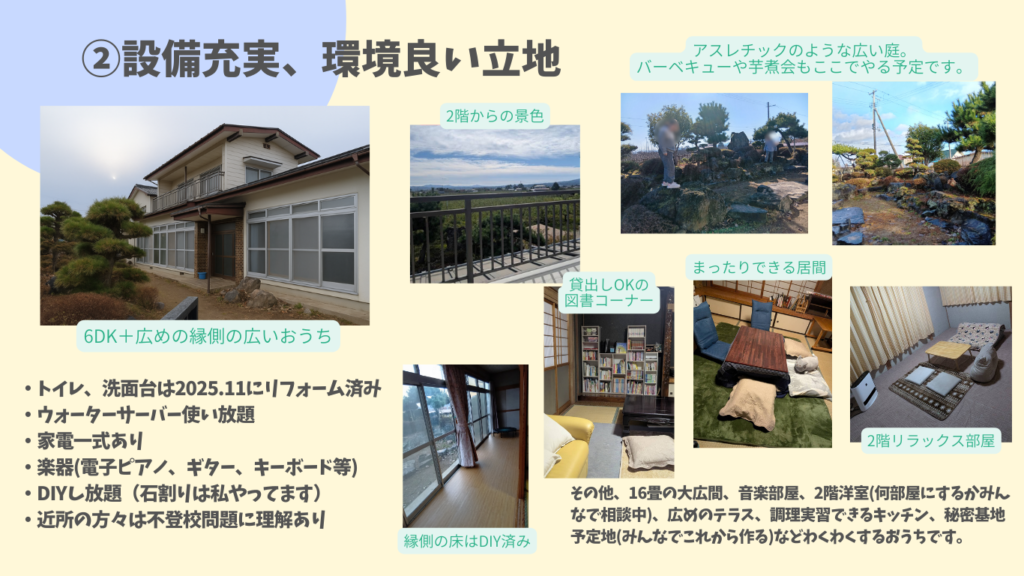 自身の子育てを経て、もう誰にも、【不登校】の親として辛い思いをして欲しくない。大切な子ども時代を【不登校】で悩んで欲しくない。誰一人教育や社会から取りこぼしたくない。そんな強い思いで、2025年12月、福島県福島市に『しあわせみつけるフリースクールらくまるはうす』を立ち上げ、この度憧れのnijinアカデミーの一員となりました。