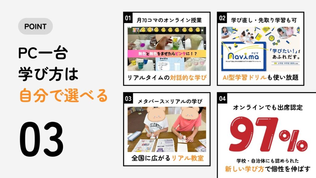 8人制のオンライン学級や1対1の専任サポート、